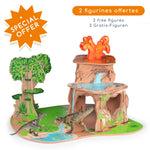 Lush vegetation, an erupting volcano, a cave, a waterfall, this setting is the ideal place to showcase the many Papo dinosaurs!
